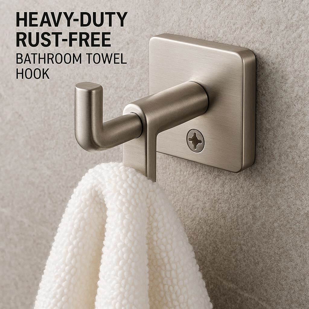 Durable zinc alloy hook with anti-rust coating, ideal for hanging towels and robes in humid environments.
