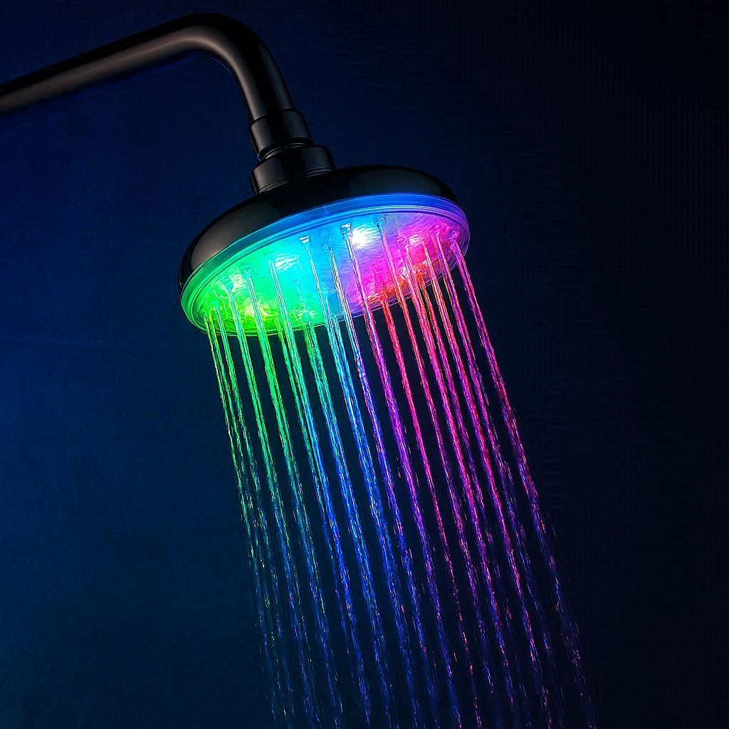 RGB LED lights change colors with water temperature (blue for cold, red for hot). Adds a fun element to kids’ baths or romantic showers.